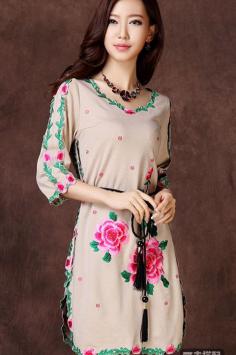 韩范轻熟女系 初春服饰尽展优雅OL美女身材一款古典优雅气质连衣裙,简约时尚圆领设计,简洁大方立体剪裁裙身,加上精美刺绣工艺,尽显女性优雅气质。