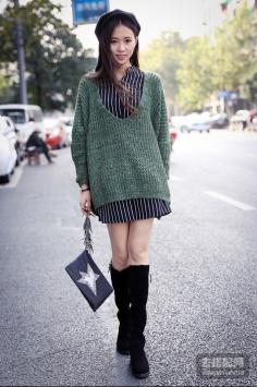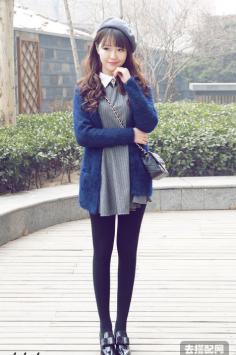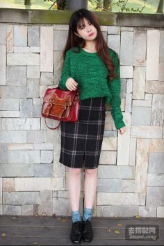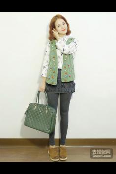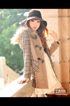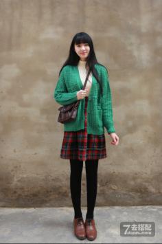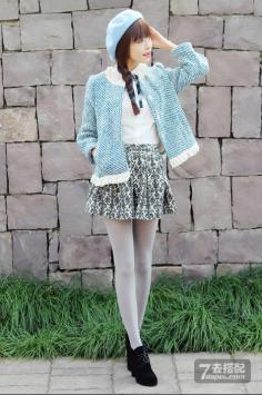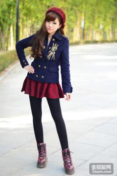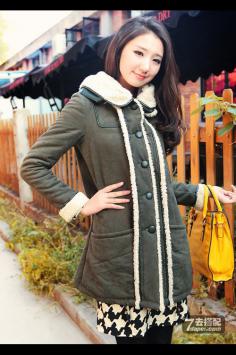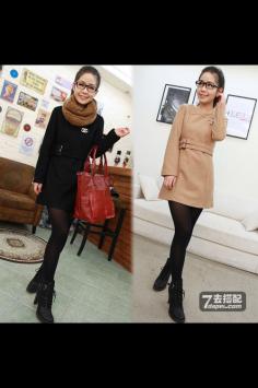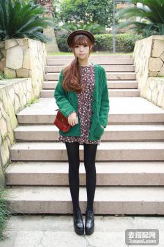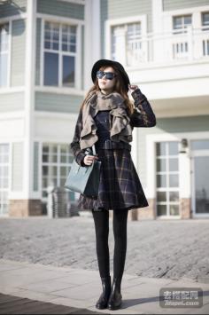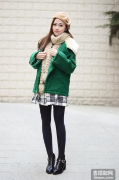 学院风+呢大衣 很有韩剧女主角的感觉哦~今年墨绿色特别流行~最近入得一款墨绿色大衣,内带羊羔绒,穿上好暖和,领子上还是真兔毛。搭配的碎花裙也是加绒款,冬天穿这一套一点都不会冷~学院风+短裙搭 让你成为冬季一道靓丽的风景线~