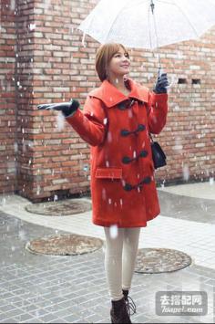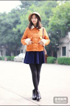 学院风+棉服+可爱 增添活力非常减龄上衣是现在很流行的高领短款毛衣,暖橘色的很衬肤色,下面是黑白格子的毛呢短裤,学院风+呢大衣 很有韩剧女主角的感觉哦~