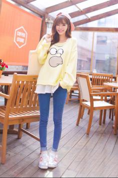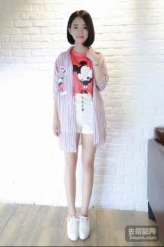 夏天+韩范+条纹搭 淑女清爽气息简单的T恤版型和面料显得更为重要,胸口的卡通设计为整件衣服增色不少~搭配休闲款牛仔短裙就可以轻松出街!夏天+清新+甜美搭 要美美哒~