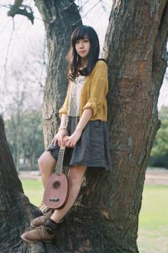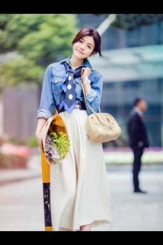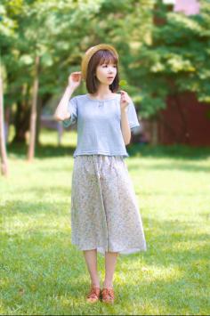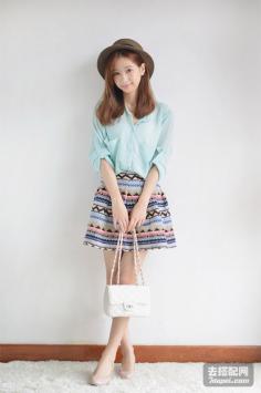 夏天+日系+文艺 小清新唯美风格清新气质的七分袖衬衫,搭配民族风约会的半身裙,清纯迷人的氧气少女形象!夏天+淑女 清纯美少女形象