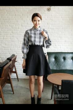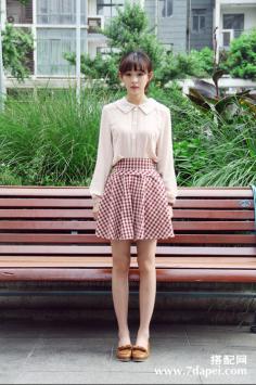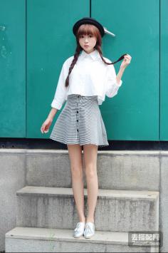 夏天+韩范+连衣裙 穿出清纯活泼纯净大方的白色雪纺衫,样式简洁,半透效果格纹,蓬松的袖口,衬托的女人更加优雅迷人,搭配修身蕾丝拼接半身裙,小女人味十足。夏天+细长腿 简约清新而自然