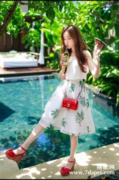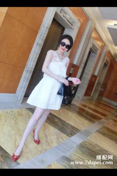 夏天+瘦腿 高腰短裤搭配风白色连衣裙总能轻易俘虏女孩们的芳心,一袭清纯的白裙显得仙气四溢,连周围的空气都变得美好起来,无袖收腰款式,衬托优美曲线,裙摆俏皮灵动,穿起来就像小仙女一般,搭配黑色坡跟凉鞋既增加了海拔,也完全不会觉得累。甜美+连衣裙