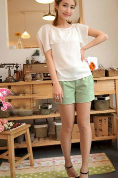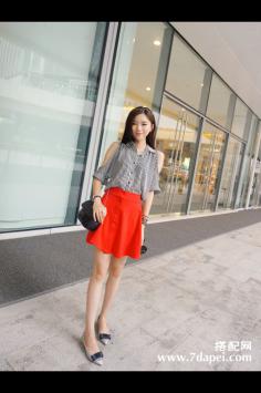 小清新+裙装 出街回头率100%气质的雪纺衫在线条的装饰下,简约又休闲~线条更能在视觉上显瘦哦~搭配简约的裤装,气质UP UP~夏天+瘦腿 高腰短裤搭配风