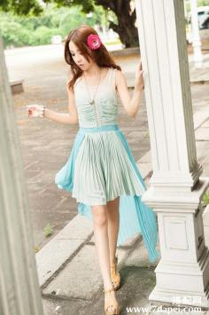 夏天+日系+清新 穿出青春甜美范夏天最喜欢雪纺的连衣裙了,非常飘逸的感觉。一点小露背,性感哦。。腿部开叉,若隐若现,最适合夏天啦。夏天+优雅 就要穿出白富美