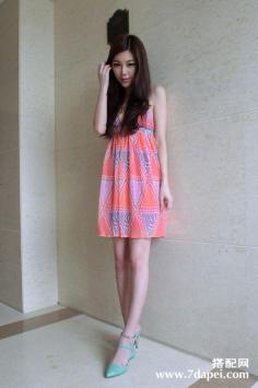 夏天+瘦腿 青春活力好身材仙女气质的一款雪纺连衣裙,清凉性感的吊带款式,凸显颈部及肩部线条。 挂脖领口突出设计感。宽松的大摆,随风舞动,超美.2015夏天+轻熟 小清新甜美漂亮