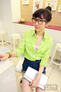 春季潮流搭 玩转撞色穿搭 纯真无忧的美丽范修身OL通勤百搭 修身短袖女衬衫衬衣 办公是一族必备哦,超炫时尚,气质女人。2013气质到爆的衬衫 优雅OL职业装 通勤衬衣