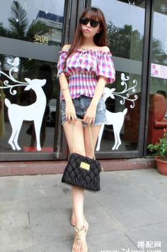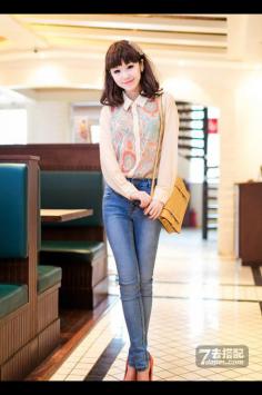夏天+细长腿 简约清新而自然粉色雪纺衫版型宽松,就算腰部有赘肉也完全看不到,而且袖子设计也花了点心思,微微翘起,正好挡住了粗壮的手臂,搭配小脚牛仔裤,上松下紧的穿法任何季节都是显瘦的法宝。夏天+恨个子太矮?矮个子增高福音
