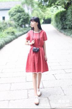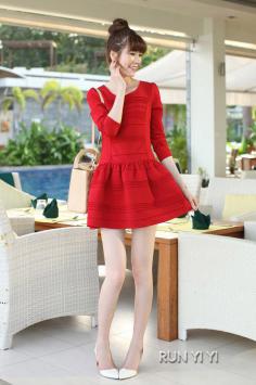 甜美春款连衣裙 清新优雅范2013初春优雅微暗的红色,洋气又显皮肤白皙,没有了大红的张扬和俗气,单穿或是内搭都足够惊艳。立体的公主裁剪方式,完美修身,优雅小圆领,360度超炫丽大裙摆,上身效果非常惊艳。同时裙子全身都采用压褶横纹线条设计,如同一道道