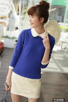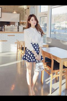 白衬衫+短裙 穿出韩国女神范优雅小圆领,双层肩部设计,别致蓬松蕾丝,修身显瘦的版型,搭配不规则百褶裙,轻盈飘逸的文艺清新范。夏天+复古+修身 文艺清新范