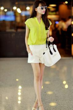 夏天+衬衫 清新干净又利落飘逸的雪纺背心 搭配水洗牛仔短裤,白色背心很清爽噢,短款更有型,飘逸舒适给夏日降温啦。短裤+矮个子 增高显瘦搭~赚足回头率