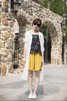 短裤+矮个子 增高显瘦搭~赚足回头率清新的色调,像汩汩而流的清泉,隐约之间的美尤其动人,立体小花的面料设计,显得高雅而不俗艳,柔美清新舒适,活泼而不张扬。夏天+长腿 出街显瘦细腿搭