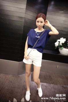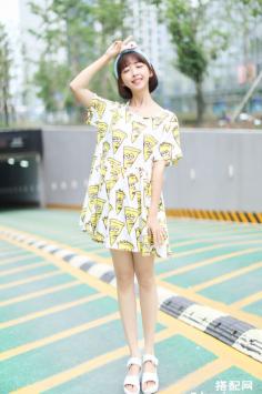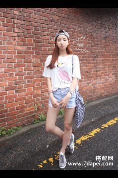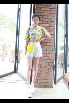 夏天+韩范+矮个子 清新甜美显高简约的款式,时尚的印花图案,百搭休闲,宽松的版型,搭配休闲高腰短裤,给人一种高挑自信的美。夏天+短裤+显瘦 夏季拉长腿~