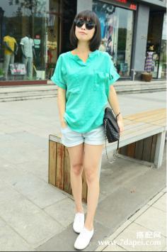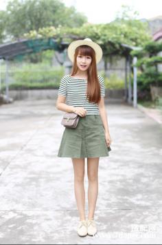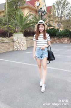 夏天+气质+名媛 自信的优雅夏天万能百搭的条纹T,搭配白色的牛仔短裤,休闲素净小清新。绿色,清爽的颜色特别养眼,而且超级符合夏天的气息~~2015夏天+瘦腿 青春活力好身材