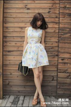 夏天+短裤+显瘦 夏季拉长腿~气质与小清新兼备的连衣裙,下摆处荷叶,行走间摇曳生姿,略微蓬松的版型反衬出双腿线条的纤细修长。夏天+韩范+连衣裙 穿出清纯活泼