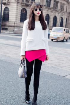 高腰包臀裙搭配显瘦显高 矮个子女生搭配技巧高腰设计针织衫搭短裙 粉色针织衫搭雪纺裙+打底裤 白色高腰短裤搭黑色上衣 玫红色高腰短裙搭白色衬衫 酒红色高腰短裙搭米白色衬衫