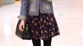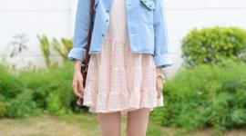 牛仔外套+碎花裙,总感觉这样的搭配特别有春天的味道~碎花雪纺裙非常清新甜美,单穿或者内搭都好看~水钻的杏色