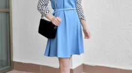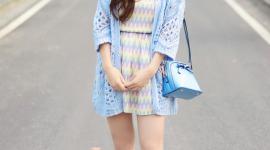 很温柔的一套配色,浅浅的奶油蓝色让人看起来就心情很好呢。针织镂空外套这个季节穿正合适,内搭钩花连衣裙质量