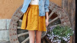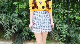 暑意还未全消的初秋,简约字母T恤搭配高腰荷叶边半身短裙,依然漂亮实穿,早晚些许凉意时,搭一件简约气质的西装外
