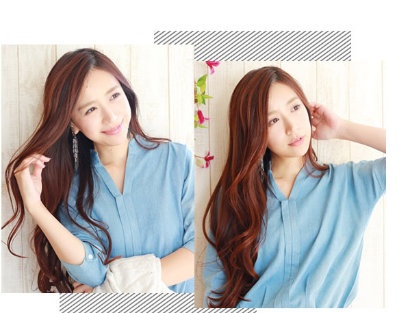 4甜美范儿十足的这款长卷发发型让人十分着迷,搭配红棕色的染发不仅提亮肤色,更是时尚度upup,再加上可爱的齐刘海设计简直让人美上天。
