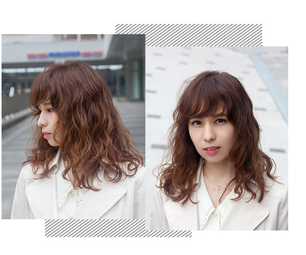 5同样是一款中长发烫发发型,简单甜美的烫发设计,搭配上清新俏皮的空气刘海,让妹子看起来很是甜美灵动。