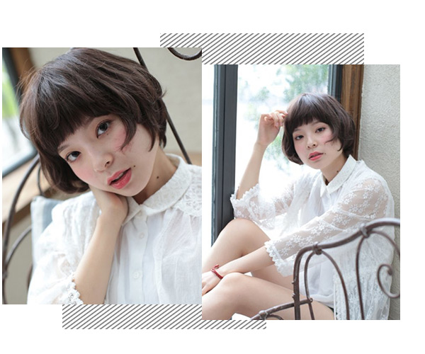 7其实圆脸妹子真的很适合齐刘海造型,短短的齐刘海在视觉上拉长了脸部线条,看起来就不会太圆,两边的短发发丝紧贴脸颊,修颜满分。