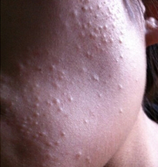 闭合性粉刺也是青春痘的一种,也就是还在皮肤里还没有"探出头"的粉刺。它主要是由死掉的细菌和身体分泌物组成。多发于面部,为细小的皮下脂栓,表现为米粒大小的半球形白色小包,质硬,无自觉症状。