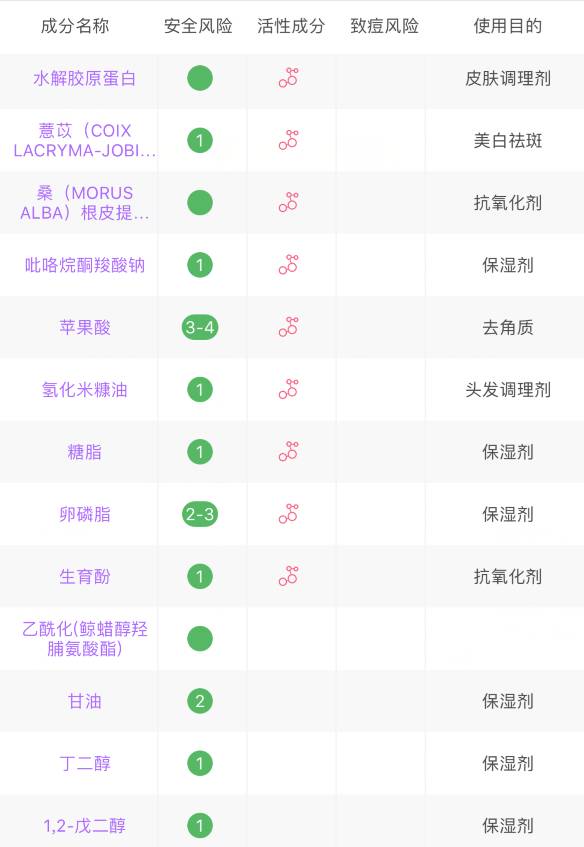 成分表的前排是薏苡籽提取物、以及苹果酸、VE这些保湿顺便抗氧化的成分,整支眼霜的关键词都在美白和抗氧化上,而且价格还辣么白菜!