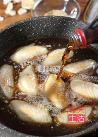 5倒入可乐,开锅后放盐,大火收汁就可以啦