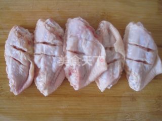 2将鸡翅里侧切口,为了鸡翅更入味。
