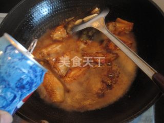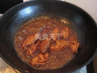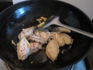 6放入焯好的鸡翅,少许八角瓣煸炒1分钟。