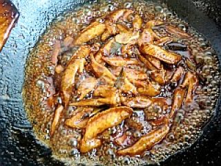 9把鸡翅翻炒上色。