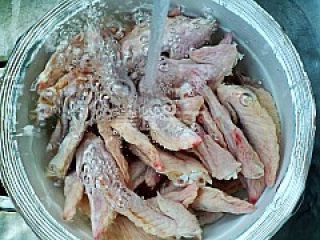 2鸡翅尖用流水冲洗5分钟。