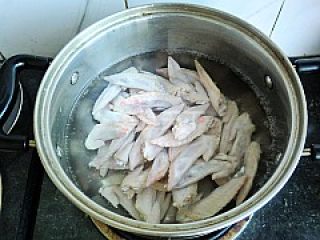3锅中烧开水放入翅尖焯烫过凉备用。