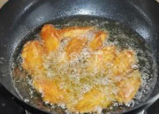 4然后把腌过的鸡翅入5成油锅炸三四分钟,外皮金黄即可捞出。