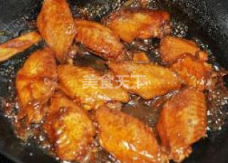 7小火炖至汁快收干时改大火收汁,再挤几滴柠檬汁再鸡翅上即可食用。