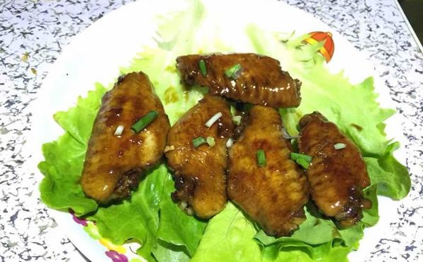 6 待装盘后在鸡翅上撒上一些葱花或白芝麻,根据个人口味而定