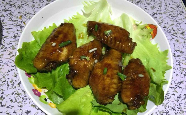 5 待装盘后在鸡翅上撒上一些葱花或白芝麻,根据个人口味而定
