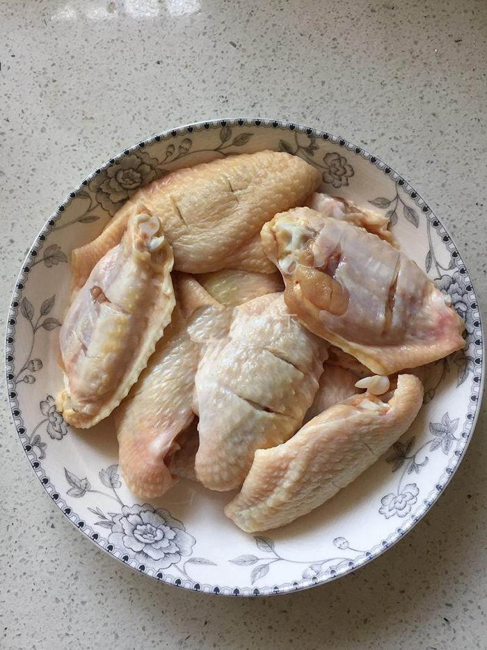 1鸡中翅洗干净,沥干水分,用刀在两面各割两刀,方便入味。