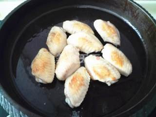 3平底锅烧热加入植物油,放入鸡翅煎至表面微微发黄。