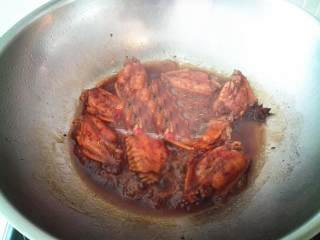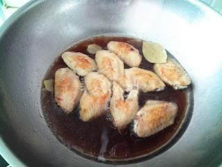5加入适量可口可乐、生抽、料酒、盐,少量老抽,最后加入鸡翅、香叶、八角。