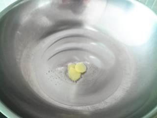 4炒锅烧热加入少量植物油,加入姜片爆香。