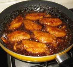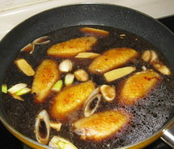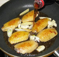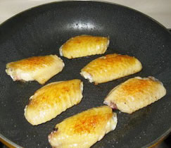 3锅是放入少量油烧至5成热,放入鸡翅,煎至两面金黄