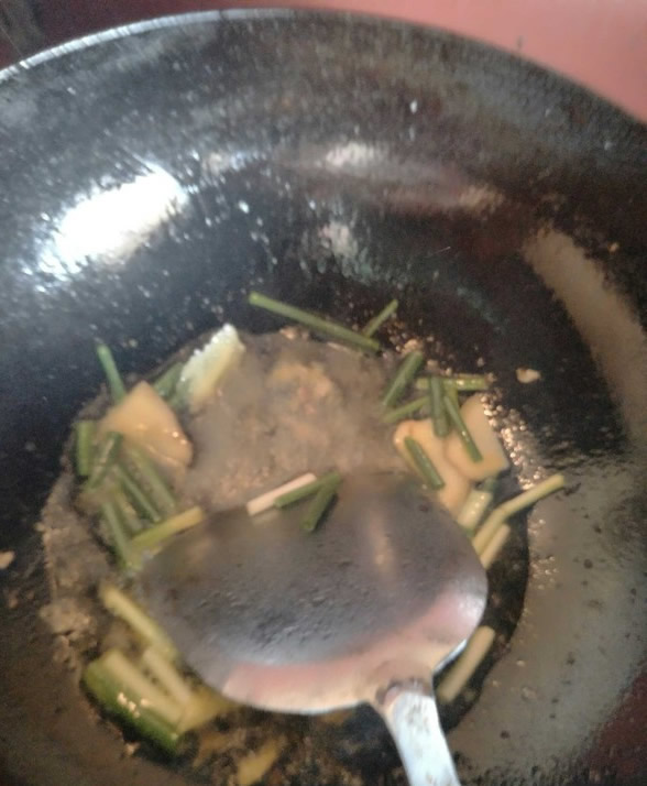 5 锅里放油,烧热后下葱段,姜片爆炒出香味