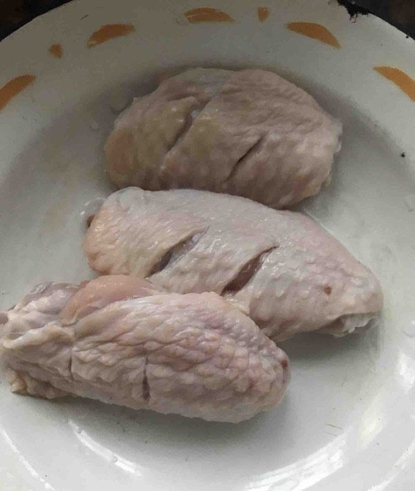 1 先洗干净鸡翅,多洗几遍。(这样比较干净)