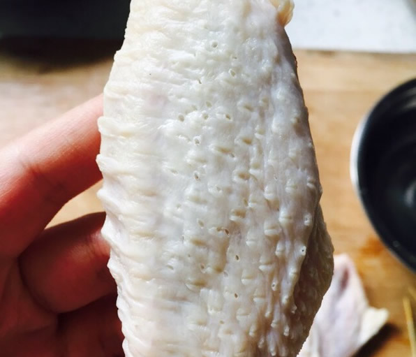 1将鸡翅清洗干净,用牙签在鸡翅上面插满小孔