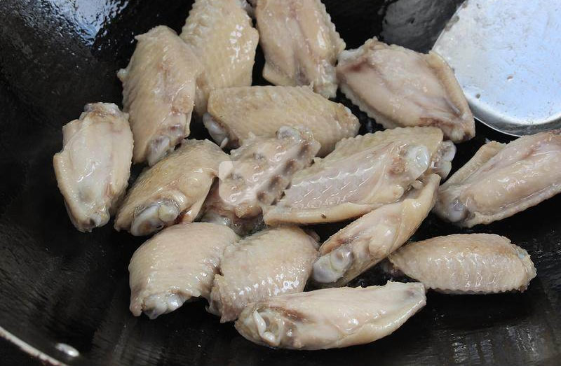 3锅中坐油,油热后下入鸡翅,两面煎一下;
