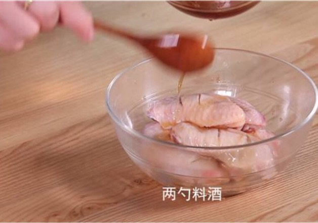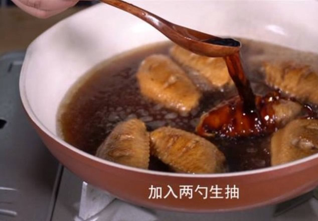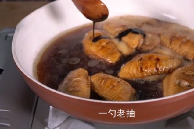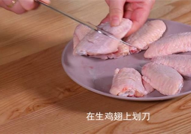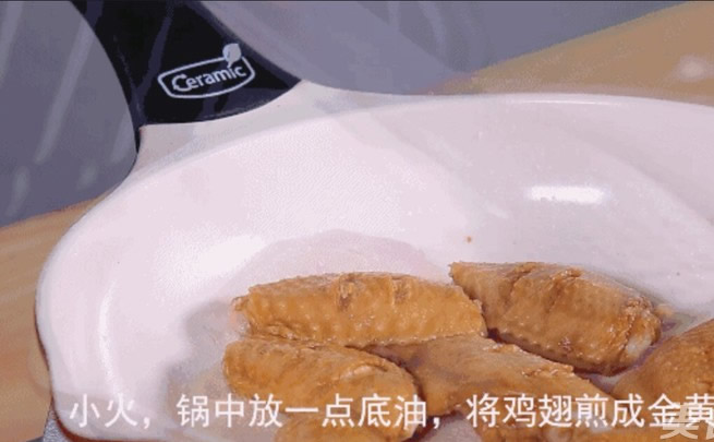 8小火,锅中放一点底油,将鸡翅煎成金黄。