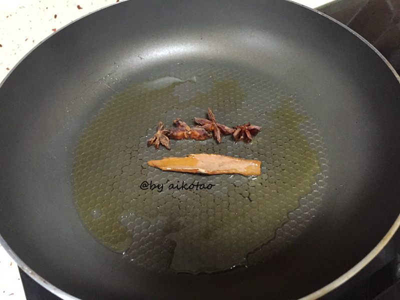 3锅里放少许油,下八角桂皮煸炒出香味捞出