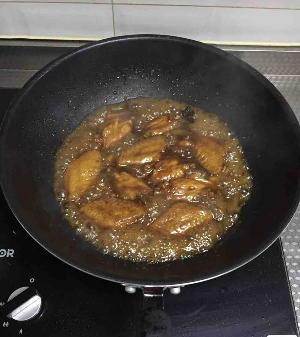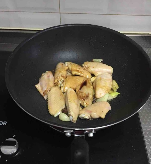 2 放入鸡翅用翻炒至稍变色
